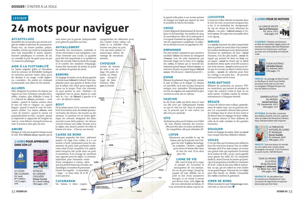 P. 52  Un marin d’eau douce s’est pris les pieds dans les légendes du dessin de bateau réalisé par Rémi Nobileau : le « carré » est en fait un « cockpit » (le carré est à l’intérieur de la cabine) ; l' »étai » est un pataras (l’étai est à l’avant du bateau) ; la « grande voile » est plutôt une « grand-voile » ; la « barre » est plus précisément une « barre à roue ». La rédaction tient à préciser que l’auteur du dessin, excellent marin par ailleurs, n’est pour rien dans ce cafouillage lexical.