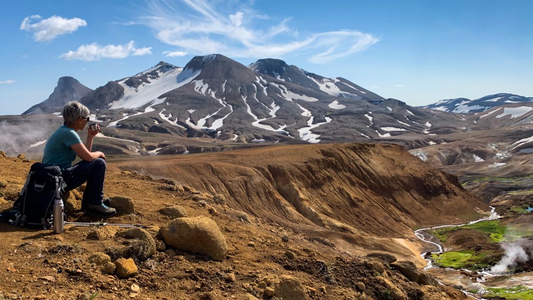 Description: La zone géothermale de la vallée de Hveradalir compose un tableau vivant aux multiples couleurs : des montagnes orangées traversées des rivières chaudes s'échappe la fumée des solfatares bleu-gris et des fumerolles ... Ici la terre semble vivante et nous ramène à notre condition humaine.