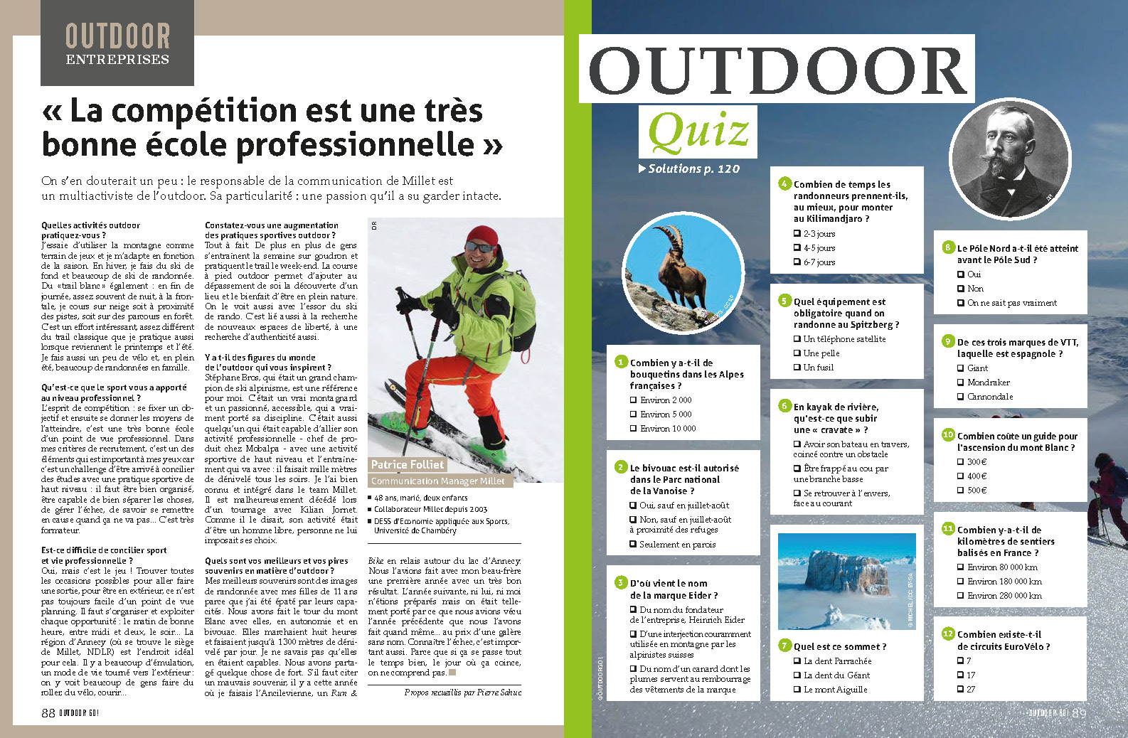 Lieux de départ : Millet, Petzl, Therm-A-Rest, Salomon, MSR